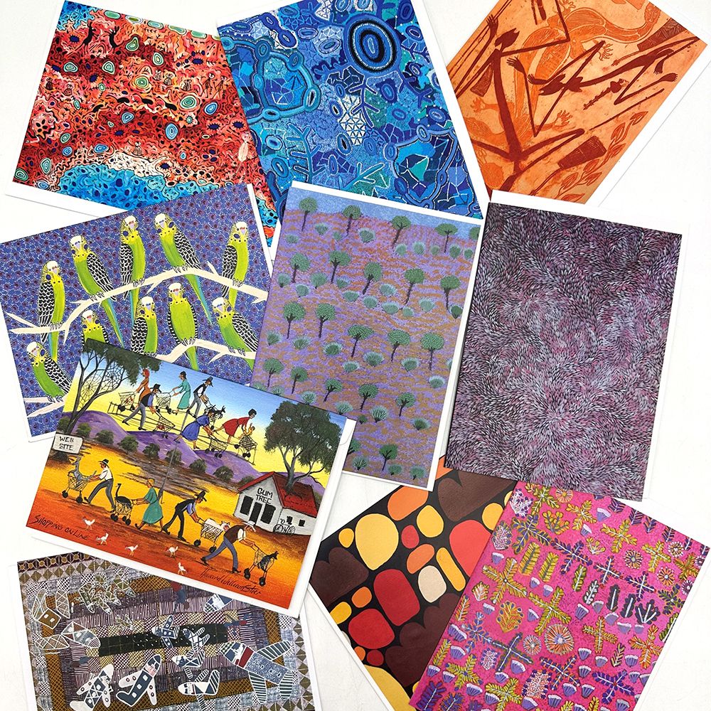 Greeting cards, bookmarks, wrapping papers all made carbon neutral are printed with beautiful artworks from Aboriginal and Australian artists.